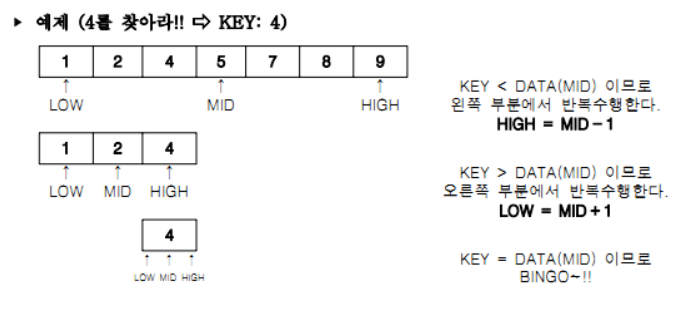 - high / low / mid 의 위치를 바꿔주며 Key를 찾아내도록 합니다