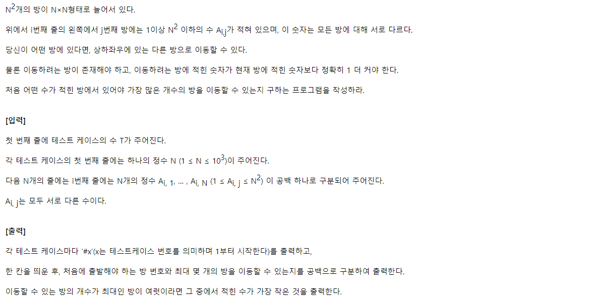 [SWEA / Java] 1861 : 정사각형 방 본문
