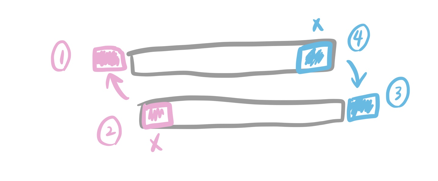 - 가장 먼저 벨트에 올라간 로봇부터, 벨트가 회전하는 방향으로 한 칸 이동할 수 있다면 이동한다. 만약 이동할 수 없다면 가만히 있는다.