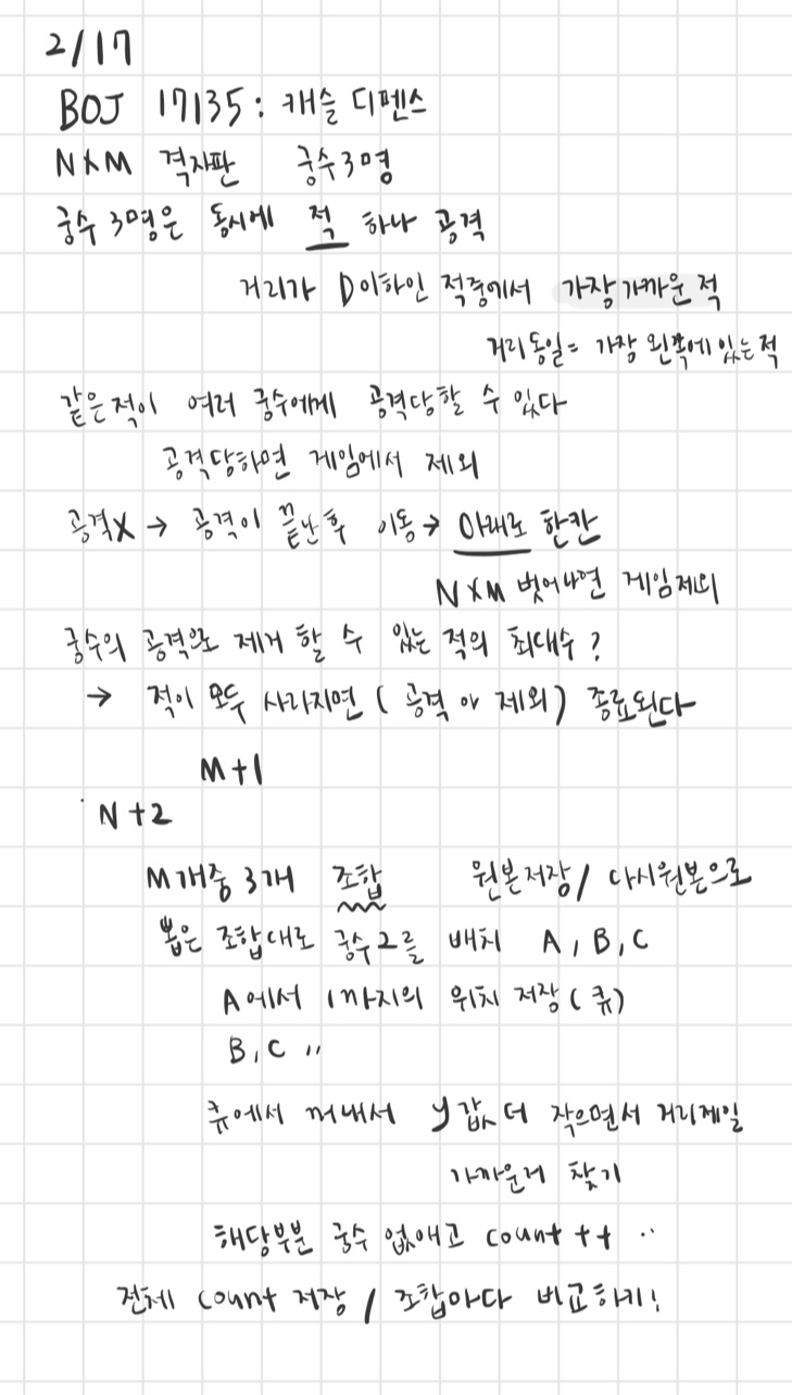[BOJ/Java] 17135 : 캐슬 디펜스 본문
