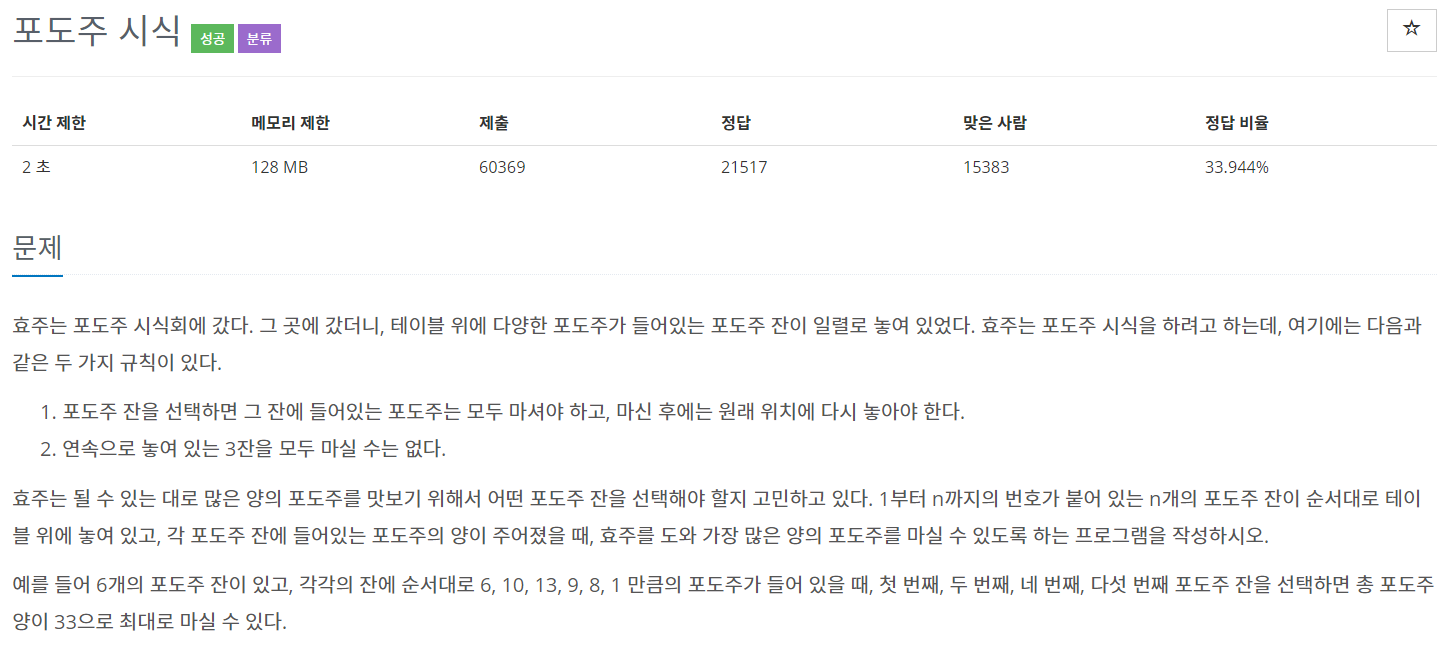 [BOJ/C++] 2156번 : 포도주 시식 본문