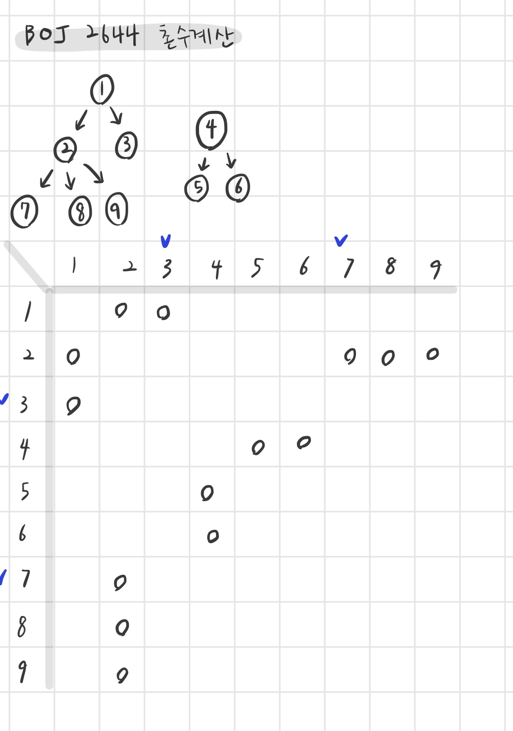 - 부모/자식간의 관계를 나타내는 relation이라는 이차원배열을 만들어 부모/자식간이면 1을, 아니라면 0이 들어있도록 한다